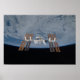 Backdropped by the blackness of space and Earth's horizon, the International Space Station is seen from Space Shuttle Discovery as the two spacecraft begin their relative separation. Earlier the STS-119 and Expedition 18 crews concluded 9 days, 20 hours and 10 minutes of cooperative work onboard the shuttle and station. Undocking of the two spacecraft occurred at 2:53 p.m. (CDT) on March 25, 2009.
