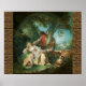 Painting by François Boucher 1750 .In this painting a young shepherdess has dozed off and is about to be awakened by a young swain, who sneaks up from behind and tickles her face with a bit of straw. The setting is rich and fertile, enlivened by sheep and a dog; vies from the distance .