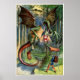 Vintage color lithograph of The Jabberwock, from Through the Looking-Glass, and What Alice Found There by Lewis Carroll, John Tenniel. Alice finds a book written in a seemingly unintelligible language. Realizing that she is traveling through an inverted world, she recognizes that the verse on the pages are written in mirror-writing. She holds a mirror to one of the poems, and reads the reflected verse of "Jabberwocky".