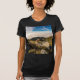 I love wearing a reprint of my colored pencil drawing of Annie the cat looking over the hillside. My illustration is based on a picture I took of Annie the manx cat. The printing turned out lovely, and the shirt is soft and thick. The American Apparel shirt run on the smaller size, so I always order a large or extra large.