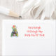Festive kayaking return address labels featuring The Kayak Christmas Tree with green, yellow and red kayaks propped upright in the snow, decorated with silver garland for the Christmas season - customize with your address - All rights reserved. © katz d zynes