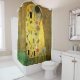 This is The Kiss painted by Gustav Klimt in 1907 on a shower curtain. It is the most famous Art Nouveau painting in history