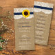 The Kraft, lace and sunflower collection is a stunning design featuring a lovely rustic Kraft paper effect background with a romantic vintage white lace effect trim finished with a stunning sunflower and a navy blue ribbon effect.