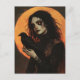 A beautiful woman in a black lace dress with her pet crow AI generated