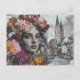 The Lady Collage With Flowers and Buildings Postcard