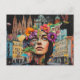 The Lady in a City Collage Flowers Frogs Birds Postcard