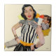 Artist:Mike Ludlow | Woman in black & white striped dress looks back at man on couch