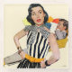 Artist:Mike Ludlow | Woman in black & white striped dress looks back at man on couch