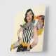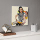 Artist:Mike Ludlow | Woman in black & white striped dress looks back at man on couch