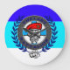 The skull and circle design is colored in blue and gray in a casual style.