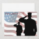 In honor of our fallen members of the armed forces. Saluting soldiers with the American flag in the background.