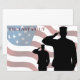 In honor of our fallen members of the armed forces. Saluting soldiers with the American flag in the background.