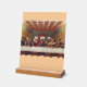 The painting represents the scene of the Last Supper of Jesus with the Twelve Apostles, as it is told in the Gospel of John – specifically the moment after Jesus announces that one of his apostles will betray him