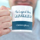 Personalized retirement coffee mug with dash of humor. The mug has the funny retirement quote "The Legend has Retired", which is lettered in bold, ocean blue typography. To make your gift unique, the template is set up ready for you to add the retiree's name (leave the box blank if you don't want a name). This design has a smart color palette of ocean blue and white and a simple color block stripe. Useful and fun keepsake gift for your husband or retirement souvenir for a friend or co-worker.