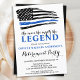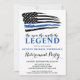 The Man The Myth The Legend! Thin Blue Line Police Retirement Invitations . Celebrate years of dedicated service, and invite friends and family to your law enforcement retirement party with this Thin Blue Line Flag Police Retirement Invitation. USA American flag design in Police Flag colors, modern trendy black white and blue design. See our collection for matching police retirement gifts, police retirement party favors, and supplies. COPYRIGHT © 2021 Judy Burrows, Black Dog Art - All Rights Reserved. The Legend Police Thin Blue Line Retirement Invitation