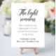 This modern black and white memorial service foam board sign, with it's touching "The light remains" quote, is a beautiful way to honor a deceased loved one at a memorial service, funeral, or celebration of life.