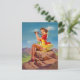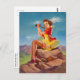 Classic PinUp card showing a PinUp Girl sitting on a rock and is exploring the nature with binoculars, painted by Art Frahm (1907-1981)