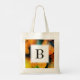 A stylish Christian tote bag, with inspirational quote based on the biblical blessing in Numbers 6:24-26, which commences THE LORD BLESS YOU AND KEEP YOU. The design shows a citrus inspired orange and yellow bokeh pattern in the background. The Scripture verse is CUSTOMIZABLE so you can change the Bible version if you wish (some people prefer NIV, NKJV, KJV, etc). There is also a customizable monogram on the reverse, which you can personalize with your own initial.