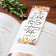 This beautiful bookmark graphic features a watercolor floral design with yellow sunflowers and autumn flowers at the top and bottom. The center contains the biblical quote 'The name of the Lord is a strong tower, the righteous run into it and are safe,' from Proverbs 18:10, in an elegant script font.