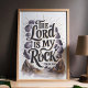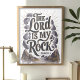 This striking wall art features the powerful Bible verse, "The Lord Is My Rock" from Psalm 18:2, beautifully rendered in bold lettering surrounded by a rocky landscape. The monochrome palette with earthy tones and detailed rock illustrations create a sense of strength and stability, making it a perfect piece for any space that seeks to reflect faith and resilience. Ideal for adding a touch of spiritual inspiration to your home or as a meaningful gift for loved ones.