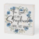 The Lord Is My Shepherd | Psalm 23:1 Bible Verse Christian scripture wood block written in beautiful black script on a white stripped background, surrounded with a blue floral wreath. Express your faith in style with this unique art work. It would also make a lovely gift for a Christian friend or as a gift for a Pastor's wife! See more in this collection in our store. Please note that you can change the color of the background of the picture by clicking through the customization button and clicking on another color in the menu.