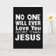 The Love of Jesus Card. No one will ever love you more than Jesus. That's why this beautiful card is perfect for showing your loved ones just how much you care. With its simple message and beautiful design, it's a great way to show your faith and your love.