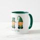This is a fun illustration of garden gnomes styled for St. Patrick's day. They feature four leaf clovers and a bright orange beard.