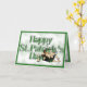 Send St. Patrick's Day greetings with this Lucky four leaf clovers and a pot of gold coins card. Greeting cards are available in three sizes. Add your own text to personalize. The bold green border can be removed.