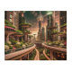 This design captures a breathtaking vision of a futuristic metropolis, where innovation and sustainability merge seamlessly. Towering skyscrapers, crafted from sleek and reflective materials, dominate the skyline, their surfaces glowing with vibrant neon lights. The architecture pushes the boundaries of imagination with gravity-defying structures, floating platforms, and interconnected skybridges that weave through the cityscape. Advanced transportation systems, including flying vehicles, high-speed trains, and transparent tunnels, crisscross the city, highlighting its cutting-edge infrastructure. Green spaces are thoughtfully integrated, with vertical gardens and rooftop parks that provide a refreshing contrast to the urban landscape. Powered by eco-friendly energy sources like solar panels and wind turbines, this city represents the epitome of high-tech sophistication and sustainable living. The overall aesthetic is clean, polished, and futuristic, embodying a harmonious coexistence between advanced technology and nature.