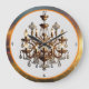 This striking image showcases an iconic chandelier, its intricate crystals and radiant lights meticulously detailed in fine lines. Bathed in golden hues, the chandelier embodies luxury and sophistication, creating a mesmerizing interplay of light and shadow against a soft, light-colored background.