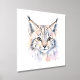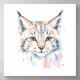 A watercolor image of a lynx's upper body. Viewers' attention surely is captured by the lynx's intense, piercing eyes with a mix of deep amber and gold, giving them a lifelike sparkle. The fur is a beautiful blend of soft browns, grays, and hints of white, with each brushstroke adding texture and depth. The watercolor technique adds a dreamy, fluid quality to the image, with the colors subtly blending into one another. The lynx's tufted ears stand tall, adding a touch of wild elegance to the portrait. It's a captivating piece that feels both vibrant and serene.