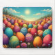 An endless field of beautifully painted Easter eggs glows under a soft sun. The cheerful colors and playful patterns of the eggs spread an atmosphere of joy and security. Colorful spring flowers bloom between the eggs and complete the peaceful, dreamlike scenery. A place full of magic that awakens childhood memories and the anticipation of Easter.