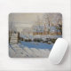 Snowscape painting by the French Impressionist Claude Monet depicting a solitary black magpie perched on a fence.