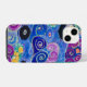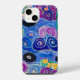 A kaleidoscope of colors forms swirling patterns and floral motifs, creating a lively visual tapestry. The use of bold blues, purples, and greens combines with striking pinks and yellows to evoke an intricate, whimsical feel. The artwork's complexity and vivid colors suggest a playful yet sophisticated design.