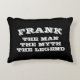 The man myth legend custom name macho Accent Pillow for guys. Bold black and white typography template. Personalize with your own name and humorous quote. Perfect Holiday and Birthday gifts for dad, husband, brother, uncle, grandpa, coworker etc.