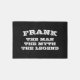 The man myth legend funny custom name outdoor rug for guys. Bold black and white typography template. Personalize with your own name and humorous quote. Perfect Holiday and Birthday gifts for dad, husband, brother, uncle, grandpa, coworker etc.