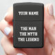 The man myth legend personalized Zippo lighter with humorous quote. Cool masculine gift idea for men. Funny saying with custom name. Black and white typography template design. Manly wedding or Birthday gift idea for groom, groomsmen, best man, dad, uncle, father, friend, grandpa, brother, sports coach, stepdad, boss etc.