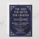 He IS The Man The Myth The LEGEND! His life has been an amazing adventure and it's time to celebrate his legacy and him. This textured navy blue paper with white type and white scrolled corner 100th Birthday invitation is perfect for inviting friends and family to join you in honoring and celebrating this incredible milestone birthday! To see your unique invitations click on "Personalize this Template" and type in your information. It's super easy!