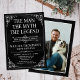 He IS The Man The Myth The LEGEND! His life has been an amazing adventure and it's time to celebrate his legacy and him. This textured black paper with white type and white scrolled corner 50th Birthday invitation with the guest of honor's photo on the back is perfect for inviting friends and family to join you in honoring and celebrating this incredible milestone birthday! To see your unique invitations click on "Personalize this Template" and type in your information and upload a favorite photo. It's super easy!