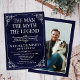 He IS The Man The Myth The LEGEND! His life has been an amazing adventure and it's time to celebrate his legacy and him. This textured navy blue paper with white type and white scrolled corner 50th Birthday invitation with the guest of honor's photo on the back is perfect for inviting friends and family to join you in honoring and celebrating this incredible milestone birthday! To see your unique invitations click on "Personalize this Template" and type in your information and upload a favorite photo. It's super easy!