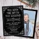 He IS The Man The Myth The LEGEND! His life has been an amazing adventure and it's time to celebrate his legacy and him. This textured black paper with white type and white scrolled corner 60th Birthday invitation with the guest of honor's photo on the back is perfect for inviting friends and family to join you in honoring and celebrating this incredible milestone birthday! To see your unique invitations click on "Personalize this Template" and type in your information and upload a favorite photo. It's super easy!