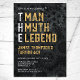 His life has been a great adventure! This fabulous black men's 60th birthday party invitation that says "The Man The Myth The Legend" in a trendy grunge CAP font in white and gold would be perfect for asking people to join you as you celebrate the man in your life's 60th birthday. This invitation is stylish, modern and contemporary with the wheels of time turning in the background. To see your unique invitations select "Personalize this template" and type in your information. It's super easy!