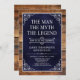 He IS The Man The Myth The LEGEND! His life has been an amazing adventure and it's time to celebrate his legacy and him. This rustic wood backed textured navy blue paper with white type and and white scrolled corners 60th Birthday invitation is perfect for inviting friends and family to join you in honoring and celebrating this incredible milestone birthday! To see your unique invitations click on "Personalize this Template" and type in your information. It's super easy!