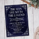 He IS The Man The Myth The LEGEND! His life has been an amazing adventure and it's time to celebrate his legacy and him. This textured navy blue paper with white type and white scrolled corner 65th Birthday invitation is perfect for inviting friends and family to join you in honoring and celebrating this incredible milestone birthday! To see your unique invitations click on "Personalize this Template" and type in your information. It's super easy!