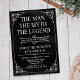 He IS The Man The Myth The LEGEND! His life has been an amazing adventure and it's time to celebrate his legacy and him. This textured black paper with white type and white scrolled corner 65th Birthday invitation is perfect for inviting friends and family to join you in honoring and celebrating this incredible milestone birthday! To see your unique invitations click on "Personalize this Template" and type in your information. It's super easy!