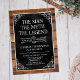 He IS The Man The Myth The LEGEND! His life has been an amazing adventure and it's time to celebrate his legacy and him. This rustic wood backed textured black paper with white type and and white scrolled corners 75th Birthday invitation is perfect for inviting friends and family to join you in honoring and celebrating this incredible milestone birthday! To see your unique invitations click on "Personalize this Template" and type in your information. It's super easy!