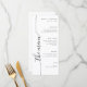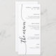 Unique minimalist wedding menu designed with elegant vertical calligraphy script that adds a touch of sophistication and class, making it a perfect choice for any wedding theme.