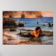 The mood is quiet but tense, like a secret discovered at low tide. Details in the surf and stone textures add realism, while the mythic subject turns the beach into a stage for longing and mystery. It is a painting about in-between states: human and creature, safety and danger, desire and distance, all held together by Waterhouse’s rich color and dramatic coastal atmosphere.