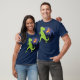 My 11 yo wore adult XL (5’7” 165#). The 8yo is small framed. She wore adult small and tied it in the back. Grandma wore adult large with long sleeve shirt underneath. Tall girl adult medium. Dark haired male adult large. Good quality dark Heather gray, Gildan brand shirt. -it was next up from basic choice and cost about $20 per shirt. Not too thick or thin. Washed and dried well, no major shrinkage. Not see-through. Can wear a bra under it fine. Screen print is just as shown and well done, front and back.