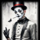 The Mime, Pen and ink image and illustration combination. AI assisted and adobe finished, red, black and white modern art style, high contrast artwork. Poster, print on demand gifts of all kinds. Pierrot, lovesick clown, art deco. This design can be easily personalized with a phrase, lyric or message.